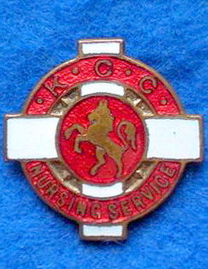 Short Description ...... The K.C.C. Nursing Service Hospital badge was awarded to nurses on completion of training. It is circular in shape and made from (materials), with the hospital name around the circumference. The badge weighs (weight) grams and has a (rear pin/button hole) fixing. Picture: The central design is of (description). Badges (were/were not) named and dated with the name of the recipient on the reverse. |