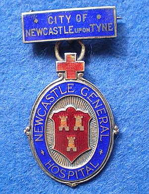 ...... Short Description ...... The Newcastle General Hospital Newcastle upon Tyne Hospital badge was awarded to nurses on completion of training. It is oval in shape and made from (materials), with the hospital name around the circumference. The badge weighs (weight) grams and has a (rear pin/button hole) fixing. Picture: The central design is of (description). Badges (were/were not) named and dated with the name of the recipient on the on the reverse. ...... |