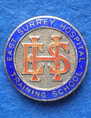 Short Description ...... The East Surrey Hospital Training School Surrey Hospital badge was awarded to nurses on completion of (length of) training. The badge is oval in shape and made from (materials), with the hospital name outlined around the circumference. The badge weighs (weight) grams and has a (rear pin/button hole) fixing. Picture: The central design is of the Jersey coat of arms below a Queens Crown. Badges (were/were not) named and dated with the name of the recipient on the reverse. |