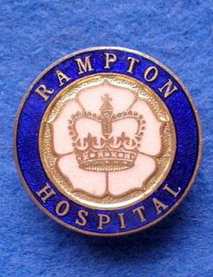 Short Description ...... The Rampton Hospital Nottinghamshire Hospital badge was awarded to nurses on completion of training. It is a circular shape with a central circular area with the hospital name above. It is made from silver metal. The badge weighs (weight) grams and has the top looped suspension bar fixing. Picture: The central circular design contains the name of the hospital above with the central picture & lamp cast in relief. Badges (were/were not) named and dated with the name of the recipient on the reverse. |