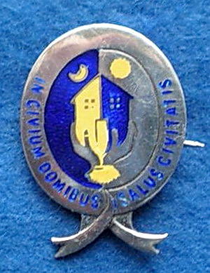 ..... Short Description ...... The Sarum School of Nursing Salisbury Hospital badge was awarded to nurses on completion of training. It is circular in shape and made from (materials), with the hospital name around the circumference. The badge weighs (weight) grams and has a (rear pin/button hole) fixing. Picture: The central design is of (description). Badges (were/were not) named and dated with the name of the recipient on the reverse. ..... |