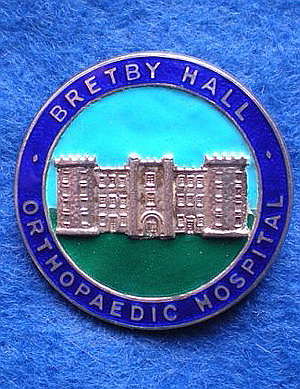 ..... Short Description ...... The Bretby Hall Orthopaedic Hospital Derbyshire hospital badge was awarded to nurses on completion of training. It is circular in shape and made from (materials), with the hospital name around the circumference. The badge weighs (weight) grams and has a (rear pin/button hole) fixing. Picture: The central design is of (description). Badges (were/were not) named and dated with the name of the recipient on the reverse. ..... |
