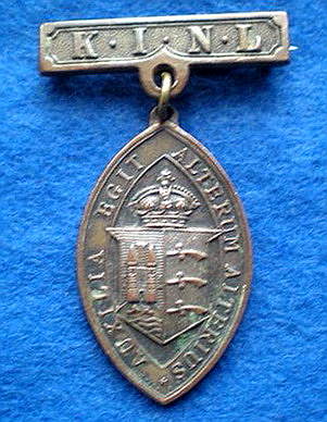 ..... Short Description ...... The K.I.N.L Hospital Hospital badge was awarded to nurses on completion of training. It is circular in shape and made from (materials), with the hospital name around the circumference. The badge weighs (weight) grams and has a (rear pin/button hole) fixing. Picture: The central design is of (description). Badges (were/were not) named and dated with the name of the recipient on the reverse. ...... |