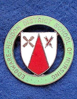Short Description ...... The Edgeware - Hendon District School of Nursing London Hospital badge was awarded to nurses on completion of (length of) training. The badge is oval in shape and made from (materials), with the hospital name outlined around the circumference. The badge weighs (weight) grams and has a (rear pin/button hole) fixing. Picture: The central design is of the Jersey coat of arms below a Queens Crown. Badges (were/were not) named and dated with the name of the recipient on the reverse. |