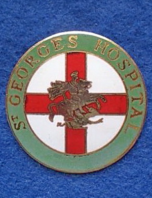 Short Description ...... The St. Georges Hospital London Hospital badge was awarded to nurses on completion of training. It is a circular shape with a central circular area with the hospital name above. It is made from silver metal. The badge weighs (weight) grams and has the top looped suspension bar fixing. Picture: The central circular design contains the name of the hospital above with the central picture & lamp cast in relief. Badges (were/were not) named and dated with the name of the recipient on the reverse. |