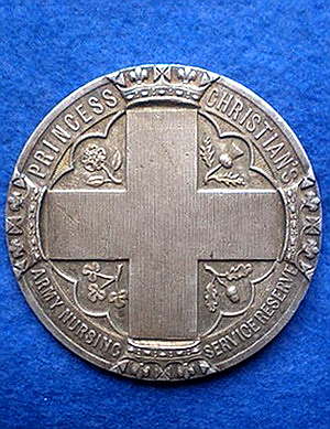 ...... Short Description ...... The Princess Christian's Royal Army Nursing Services Reserve, London Hospital badge was awarded to nurses on completion of training. It is circular in shape and made from (materials), with the hospital name around the central circumference. The badge weighs (weight) grams and has a (rear pin/button hole) fixing. Picture: The central design is of (description). Badges (were/were not) named and dated with the name of the recipient on the reverse. ...... |