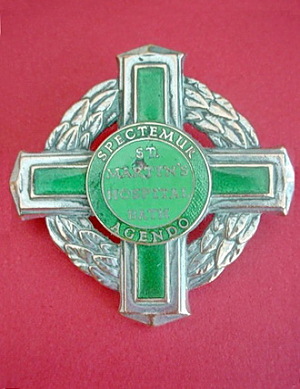 Short Description ...... The St Martin's Hospital Bath Hospital badge was awarded to nurses on completion of training. It is circular in shape and made from (materials), with the hospital name around the circumference. The badge weighs (weight) grams and has a (rear pin/button hole) fixing. Picture: The central design is of (description). Badges (were/were not) named and dated with the name of the recipient on the reverse. |