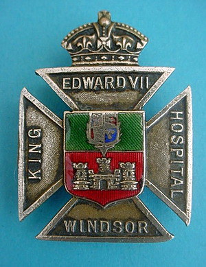 ..... Short Description ...... The King Edward II Hospital Windsor Hospital badge was awarded to nurses on completion of training. It is circular in shape and made from (materials), with the hospital name around the circumference. The badge weighs (weight) grams and has a (rear pin/button hole) fixing. Picture: The central design is of (description). Badges (were/were not) named and dated with the name of the recipient on the reverse. ...... |