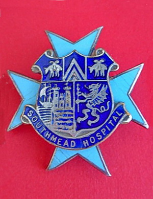 Short Description ...... The Southmead Hospital Westbury-on-Trym Hospital badge was awarded to nurses on completion of training. It is a square cruciform shape with a central circular area with a looped suspension bar above. It is made from bronze metal. The badge weighs (weight) grams and has the top looped suspension bar fixing. Picture: The central circular design contains the name of the hospital around the circumference with the central lamp and embellished cross arms cast in relief. Badges (were/were not) named and dated with the name of the recipient on the reverse. |