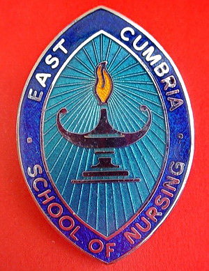 ...... Short Description ...... The East Cumbria School of Nursing Penrith Hospital badge was awarded to nurses on completion of training. It is square in shape with cropped corners and is made from (materials). The badge weighs (weight) grams and has a (rear pin/button hole) fixing. Picture: The central design is of the college logo and inscription against a blue enamel background. Badges (were/were not) named and dated with the name of the recipient on the reverse. ...... |