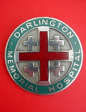 ..... Short Description ...... The Darlington Memorial Hospital Hospital badge was awarded to nurses on completion of training. It is (shape) in shape and made from (materials), with the hospital name around the circumference. The badge weighs (weight) grams and has a (rear pin/button hole) fixing. Picture: The central design is of (description). Badges (were/were not) named and dated with the name of the recipient on the reverse. ..... |