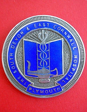 ..... Short Description ...... The South Devon & East Cornwall Hospital Plymouth Hospital badge was awarded to nurses on completion of training. It is (shape) in shape and made from (materials), with the hospital name around the circumference. The badge weighs (weight) grams and has a (rear pin/button hole) fixing. Picture: The central design is of (description). Badges (were/were not) named and dated with the name of the recipient on the reverse. ..... |