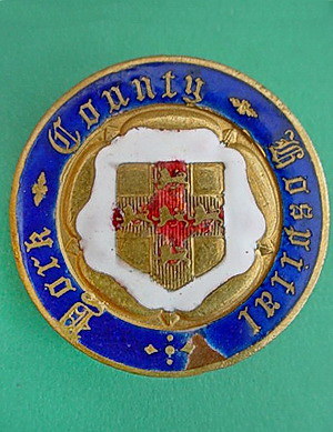 ..... Short Description ...... The York County Hospital Hospital badge was awarded to nurses on completion of training. It is (shape) in shape and made from (materials), with the hospital name around the circumference. The badge weighs (weight) grams and has a (rear pin/button hole) fixing. Picture: The central design is of (description). Badges (were/were not) named and dated with the name of the recipient on the reverse. ..... |