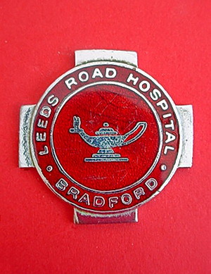 ..... Short Description ...... The Leeds Road Hospital Bradford Hospital badge was awarded to nurses on completion of training. It is (shape) in shape and made from (materials), with the hospital name around the circumference. The badge weighs (weight) grams and has a (rear pin/button hole) fixing. Picture: The central design is of (description). Badges (were/were not) named and dated with the name of the recipient on the reverse. ..... |