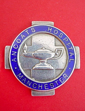 ..... Short Description ...... The Ancoats Hospital Manchester Hospital badge was awarded to nurses on completion of training. It is (shape) in shape and made from (materials), with the hospital name around the circumference. The badge weighs (weight) grams and has a (rear pin/button hole) fixing. Picture: The central design is of (description). Badges (were/were not) named and dated with the name of the recipient on the reverse. ..... |