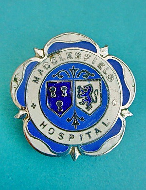 ..... Short Description ...... The Macclesfield Hospital Hospital badge was awarded to nurses on completion of training. It is (shape) in shape and made from (materials), with the hospital name around the circumference. The badge weighs (weight) grams and has a (rear pin/button hole) fixing. Picture: The central design is of (description). Badges (were/were not) named and dated with the name of the recipient on the reverse. ..... |