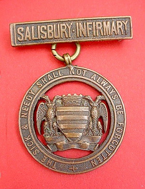 ..... Short Description ...... The Salisbury Infirmary Wiltshire Hospital badge was awarded to nurses on completion of training. It is (shape) in shape and made from (materials), with the hospital name around the circumference. The badge weighs (weight) grams and has a (rear pin/button hole) fixing. Picture: The central design is of (description). Badges (were/were not) named and dated with the name of the recipient on the reverse. ..... |