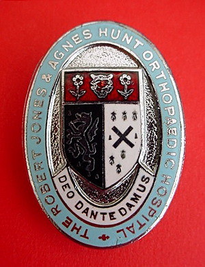 ...... Short Description ...... The Robert Jones & Agnes Hunt Orthopaedic Hospital Hospital badge was awarded to nurses on completion of training. It is circular in shape and made from (materials), with the hospital name, date of the hospitals construction and motto inscribed in Latin around the circumference. The badge weighs (weight) grams and has a (rear pin/button hole) fixing. Picture: The central design is of (description). Badges (were/were not) named and dated with the name of the recipient on the reverse. ...... |