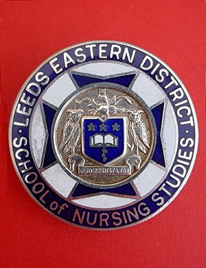 Short Description ...... The Leeds Eastern District School of Nursing Studies Hospital badge was awarded to nurses on completion of training. It is a heart shaped looped suspension bar above and is made from (materials). The hospital name is on the suspension bar. The badge weighs (weight) grams and has a (rear pin/button hole) fixing. Picture: The central design is in silver with the named suspension bar outlined in blue enamel. (description). Badges (were/were not) named and dated with the name of the recipient on the reverse. |