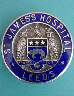 ..... Short Description ...... The St James's Hospital Leeds Hospital badge was awarded to nurses on completion of training. It is circular in shape and made from (materials), with the hospital name around the circumference. The badge weighs (weight) grams and has a (rear pin/button hole) fixing. Picture: The central design is of (description). Badges (were/were not) named and dated with the name of the recipient on the reverse. ..... |