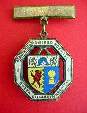 ..... Short Description ...... The Queen Elizabeth Hospital, Worcestershire Hospital badge was awarded to nurses on completion of training. It is (shape) in shape and made from (materials), with the hospital name around the circumference. The badge weighs (weight) grams and has a (rear pin/button hole) fixing. Picture: The central design is of (description). Badges (were/were not) named and dated with the name of the recipient on the reverse. ..... |