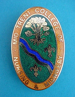 ..... Short Description ...... The Mid Trent College of Nursing & Midwifery Nottingham, Hospital badge was awarded to nurses on completion of training. It is (shape) in shape and made from (materials), with the hospital name around the circumference. The badge weighs (weight) grams and has a (rear pin/button hole) fixing. Picture: The central design is of (description). Badges (were/were not) named and dated with the name of the recipient on the reverse. ..... |