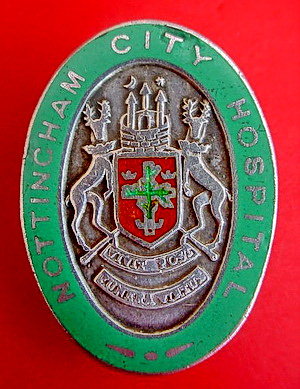 ..... Short Description ...... The Nottingham City Hospital Hospital badge was awarded to nurses on completion of training. It is (shape) in shape and made from (materials), with the hospital name around the circumference. The badge weighs (weight) grams and has a (rear pin/button hole) fixing. Picture: The central design is of (description). Badges (were/were not) named and dated with the name of the recipient on the reverse. ..... |