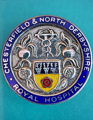 ..... Short Description ...... The Chesterfield & North Derbyshire Royal Hospital Hospital badge was awarded to nurses on completion of training. It is (shape) in shape and made from (materials), with the hospital name around the circumference. The badge weighs (weight) grams and has a (rear pin/button hole) fixing. Picture: The central design is of (description). Badges (were/were not) named and dated with the name of the recipient on the reverse. ..... |