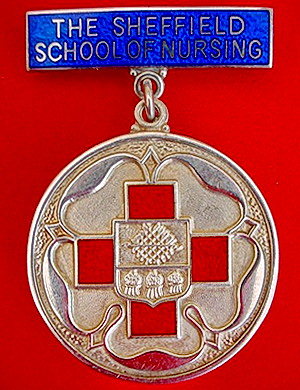 ..... Short Description ...... The Sheffield School of Nursing Hospital badge was awarded to nurses on completion of training. It is (shape) in shape and made from (materials), with the hospital name around the circumference. The badge weighs (weight) grams and has a (rear pin/button hole) fixing. Picture: The central design is of (description). Badges (were/were not) named and dated with the name of the recipient on the reverse. ..... |