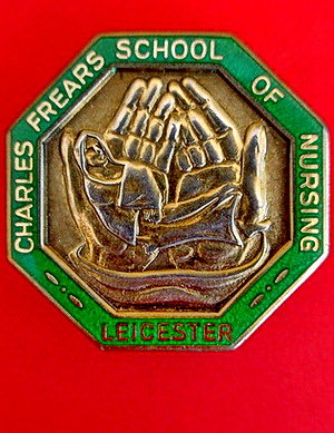 ..... Short Description ...... The Charles Frears School of Nursing Leicester Hospital badge was awarded to nurses on completion of training. It is (shape) in shape and made from (materials), with the hospital name around the circumference. The badge weighs (weight) grams and has a (rear pin/button hole) fixing. Picture: The central design is of (description). Badges (were/were not) named and dated with the name of the recipient on the reverse. ..... |