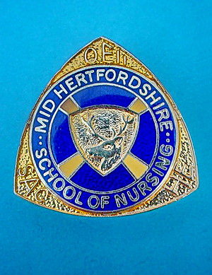 ..... Short Description ...... The Mid Hertfordshire School of Nursing Hospital badge was awarded to nurses on completion of training. It is (shape) in shape and made from (materials), with the hospital name around the circumference. The badge weighs (weight) grams and has a (rear pin/button hole) fixing. Picture: The central design is of (description). Badges (were/were not) named and dated with the name of the recipient on the reverse. ..... |