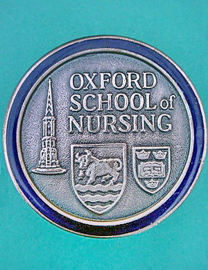 ..... Short Description ...... The Oxford School of Nursing Hospital badge was awarded to nurses on completion of training. It is (shape) in shape and made from (materials), with the hospital name around the circumference. The badge weighs (weight) grams and has a (rear pin/button hole) fixing. Picture: The central design is of (description). Badges (were/were not) named and dated with the name of the recipient on the reverse. ..... |