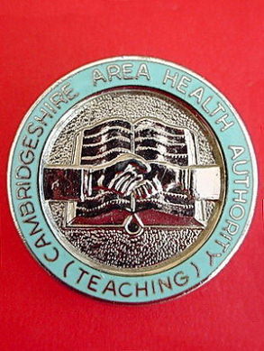 ..... Short Description ...... The Cambridge Area health Authority (Teaching) Hospital badge was awarded to nurses on completion of training. It is (shape) in shape and made from (materials), with the hospital name around the circumference. The badge weighs (weight) grams and has a (rear pin/button hole) fixing. Picture: The central design is of (description). Badges (were/were not) named and dated with the name of the recipient on the reverse. ..... |