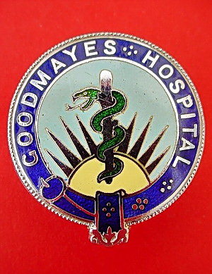 ..... Short Description ...... The Goodmayes Hospital Ilford Hospital badge was awarded to nurses on completion of training. It is (shape) in shape and made from (materials), with the hospital name around the circumference. The badge weighs (weight) grams and has a (rear pin/button hole) fixing. Picture: The central design is of (description). Badges (were/were not) named and dated with the name of the recipient on the reverse. ..... |