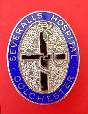..... Short Description ...... The Severalls Hospital Colchester Hospital badge was awarded to nurses on completion of training. It is (shape) in shape and made from (materials), with the hospital name around the circumference. The badge weighs (weight) grams and has a (rear pin/button hole) fixing. Picture: The central design is of (description). Badges (were/were not) named and dated with the name of the recipient on the reverse. ..... |