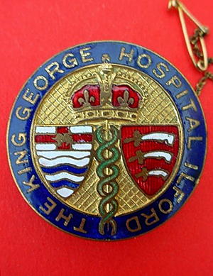 ..... Short Description ...... The The King George Hospital Ilford Hospital badge was awarded to nurses on completion of training. It is (shape) in shape and made from (materials), with the hospital name around the circumference. The badge weighs (weight) grams and has a (rear pin/button hole) fixing. Picture: The central design is of (description). Badges (were/were not) named and dated with the name of the recipient on the reverse. ..... |