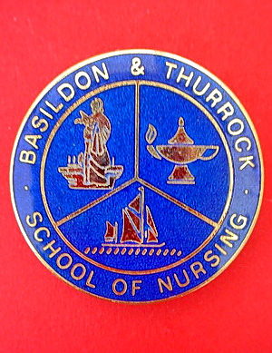 ..... Short Description ...... The Basildon & Thurrock School of Nursing Hospital badge was awarded to nurses on completion of training. It is (shape) in shape and made from (materials), with the hospital name around the circumference. The badge weighs (weight) grams and has a (rear pin/button hole) fixing. Picture: The central design is of (description). Badges (were/were not) named and dated with the name of the recipient on the reverse. ..... |