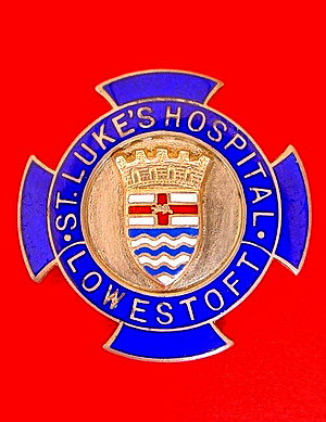 ..... Short Description ...... The St Luke's Hospital Lowestoft Hospital badge was awarded to nurses on completion of training. It is (shape) in shape and made from (materials), with the hospital name around the circumference. The badge weighs (weight) grams and has a (rear pin/button hole) fixing. Picture: The central design is of (description). Badges (were/were not) named and dated with the name of the recipient on the reverse. ..... |