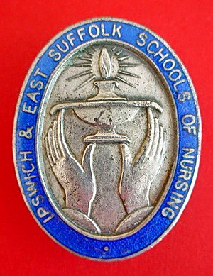 ..... Short Description ...... The Ipswich & East Suffolk School of Nursing Hospital badge was awarded to nurses on completion of training. It is (shape) in shape and made from (materials), with the hospital name around the circumference. The badge weighs (weight) grams and has a (rear pin/button hole) fixing. Picture: The central design is of (description). Badges (were/were not) named and dated with the name of the recipient on the reverse. ..... |