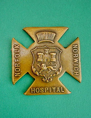..... Short Description ...... The Norfolk Norwich Hospital Hospital badge was awarded to nurses on completion of training. It is (shape) in shape and made from (materials), with the hospital name around the circumference. The badge weighs (weight) grams and has a (rear pin/button hole) fixing. Picture: The central design is of (description). Badges (were/were not) named and dated with the name of the recipient on the reverse. ..... |