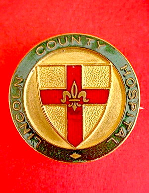 ..... Short Description ...... The Lincoln County Hospital Hospital badge was awarded to nurses on completion of training. It is (shape) in shape and made from (materials), with the hospital name around the circumference. The badge weighs (weight) grams and has a (rear pin/button hole) fixing. Picture: The central design is of (description). Badges (were/were not) named and dated with the name of the recipient on the reverse. ..... |