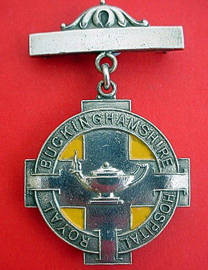 ..... Short Description ...... The Royal Buckinghamshire Hospital, Aylsbury Hospital badge was awarded to nurses on completion of training. It is (shape) in shape and made from (materials), with the hospital name around the circumference. The badge weighs (weight) grams and has a (rear pin/button hole) fixing. Picture: The central design is of (description). Badges (were/were not) named and dated with the name of the recipient on the reverse. ..... |