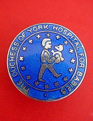..... Short Description ...... The The Duchess of York Hospital for Babies Burnage Hospital badge was awarded to nurses on completion of training. It is (shape) in shape and made from (materials), with the hospital name around the circumference. The badge weighs (weight) grams and has a (rear pin/button hole) fixing. Picture: The central design is of (description). Badges (were/were not) named and dated with the name of the recipient on the reverse. ..... |