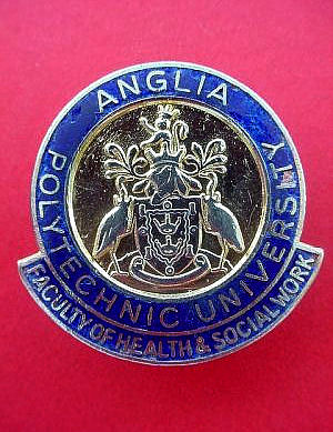 ..... Short Description ...... The Anglia Polytechnic University Faculty of Heath & Social Work Hospital badge was awarded to nurses on completion of training. It is (shape) in shape and made from (materials), with the hospital name around the circumference. The badge weighs (weight) grams and has a (rear pin/button hole) fixing. Picture: The central design is of (description). Badges (were/were not) named and dated with the name of the recipient on the reverse. ..... |