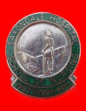 ..... Short Description ...... The Saxondale Hospital School of Nursing (SEN) Nottingham Hospital badge was awarded to nurses on completion of training. It is (shape) in shape and made from (materials), with the hospital name around the circumference. The badge weighs (weight) grams and has a (rear pin/button hole) fixing. Picture: The central design is of (description). Badges (were/were not) named and dated with the name of the recipient on the reverse. ..... |