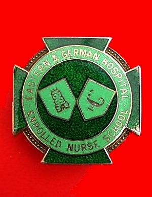 ..... Short Description ...... The Eastern & German Hospital SEN School London Hospital badge was awarded to nurses on completion of training. It is (shape) in shape and made from (materials), with the hospital name around the circumference. The badge weighs (weight) grams and has a (rear pin/button hole) fixing. Picture: The central design is of (description). Badges (were/were not) named and dated with the name of the recipient on the reverse. ..... |