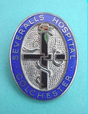 ..... Short Description ...... The Severalls Hospital Colchester Hospital badge was awarded to nurses on completion of training. It is (shape) in shape and made from (materials), with the hospital name around the circumference. The badge weighs (weight) grams and has a (rear pin/button hole) fixing. Picture: The central design is of (description). Badges (were/were not) named and dated with the name of the recipient on the reverse. ..... |