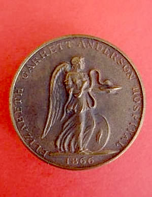 ..... Short Description ...... The Elizabeth Garrett Anderson Hospital London Hospital badge was awarded to nurses on completion of training. It is (shape) in shape and made from (materials), with the hospital name around the circumference. The badge weighs (weight) grams and has a (rear pin/button hole) fixing. Picture: The central design is of (description). Badges (were/were not) named and dated with the name of the recipient on the reverse. ..... |