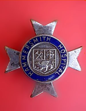 It is (shape) in shape and made from (materials), with the hospital name around the circumference.