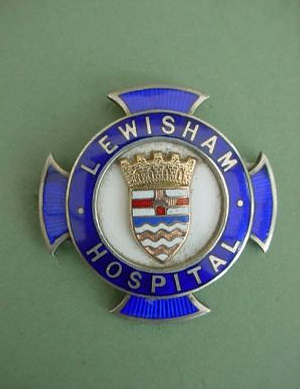 It is (shape) in shape and made from (materials), with the hospital name around the circumference.